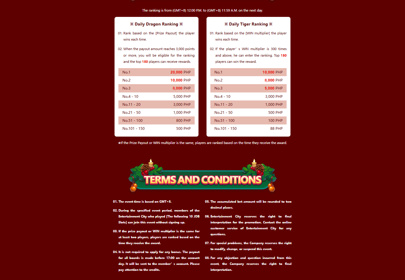 2. Ranking period of the day is 00:00:00~23:59:59 and the highest amounts for a specified period of time is a daily winner.