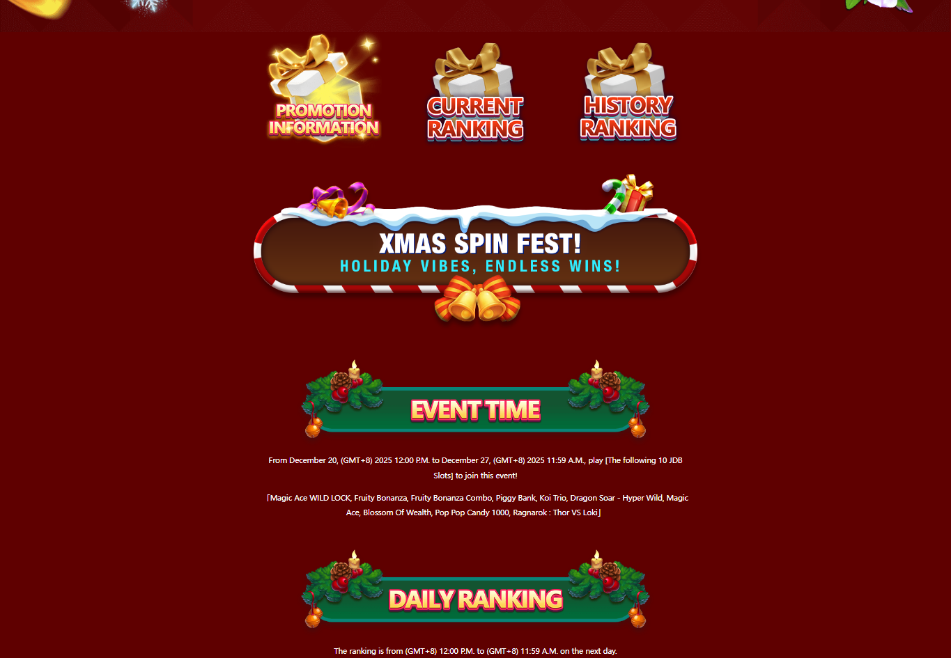 Daily Rewards : Members who play and win the highest amount from bonus of free games in 1 bet of the day, will be the winner daily champion.
