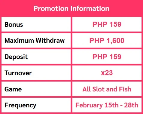 3. A deposit of PHP 159 will result in a credit of PHP 159 in the form of a bonus.